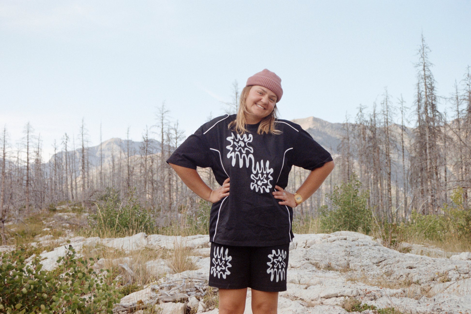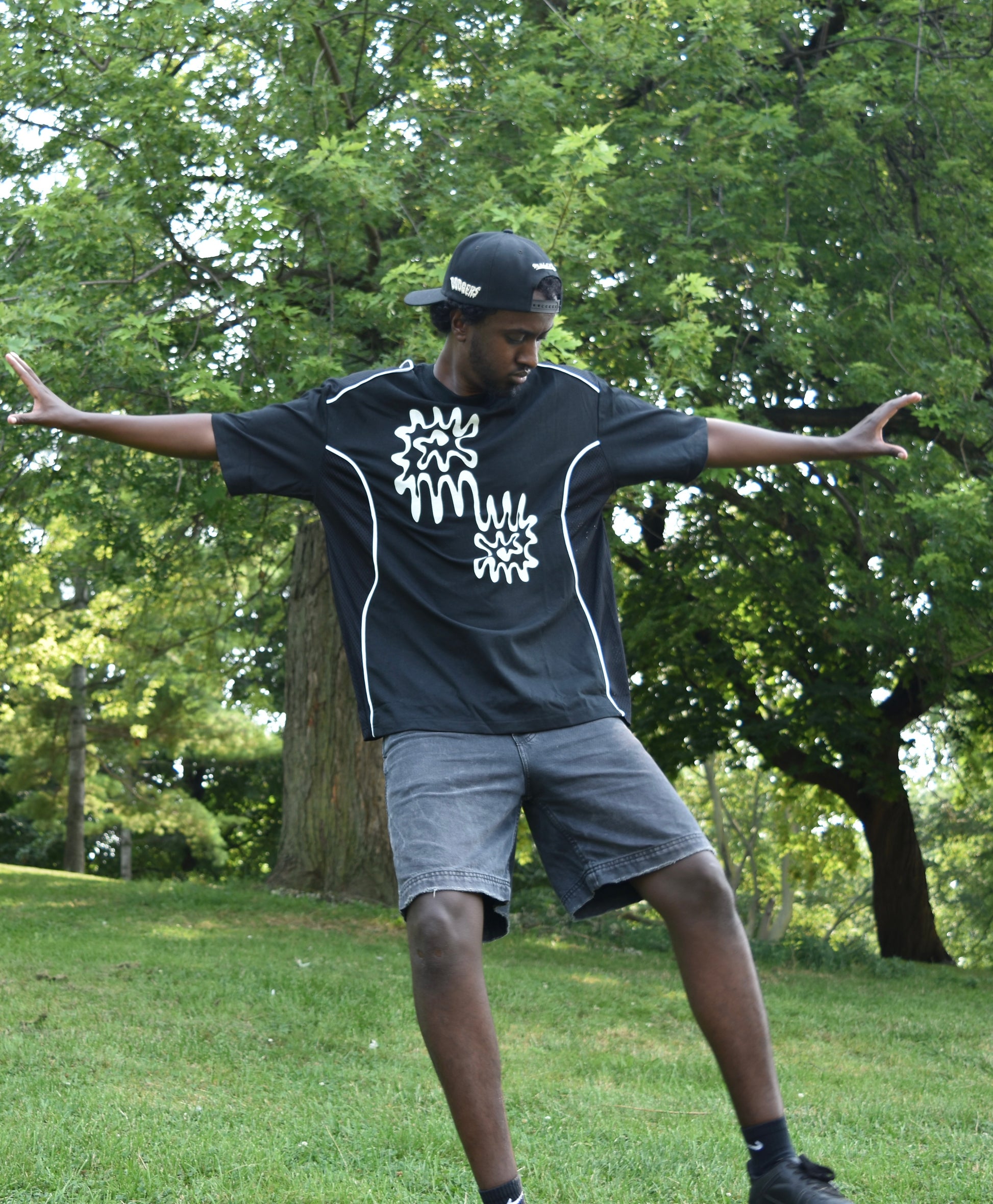 This jersey is the comfiest in the collection, Abdullah and Lorelle are wearing a large size for the perfect baggy effect! Recommend going 1-2 sizes up to achieve this look but also looks good to normal size! Material is cotton and polyester blend, good for layering and swaggy fits!
